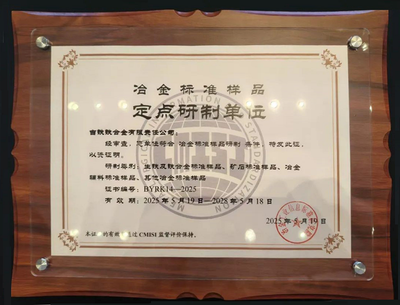 吉鐵鐵合金獲首批冶金標(biāo)準(zhǔn)樣品“雙資質(zhì)”認(rèn)證