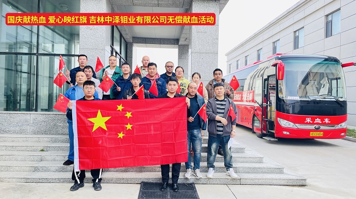 9月27日,吉林中澤鉬業開展以“國慶獻熱血,愛心映紅旗”為主題的無償獻血活動,獻禮新中國成立75周年。